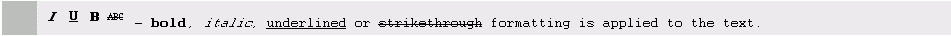 Note: If the user applies any of these options to the selected text, the toolbar button will be highlighted. In case the formatting needs to be removed, the user should press the highlighted button again. Any of the options can be applied to the text individually or in any combination with other options.